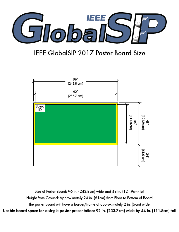Make your poster as self-explanatory as possible. This will save your efforts for technical discussions. There will not be any summaries given at the beginning of the poster sessions at GlobalSIP 2017, so authors need not prepare any overhead slides for their poster presentations. You may bring additional battery-operated audio or visual aids to enhance your presentation.